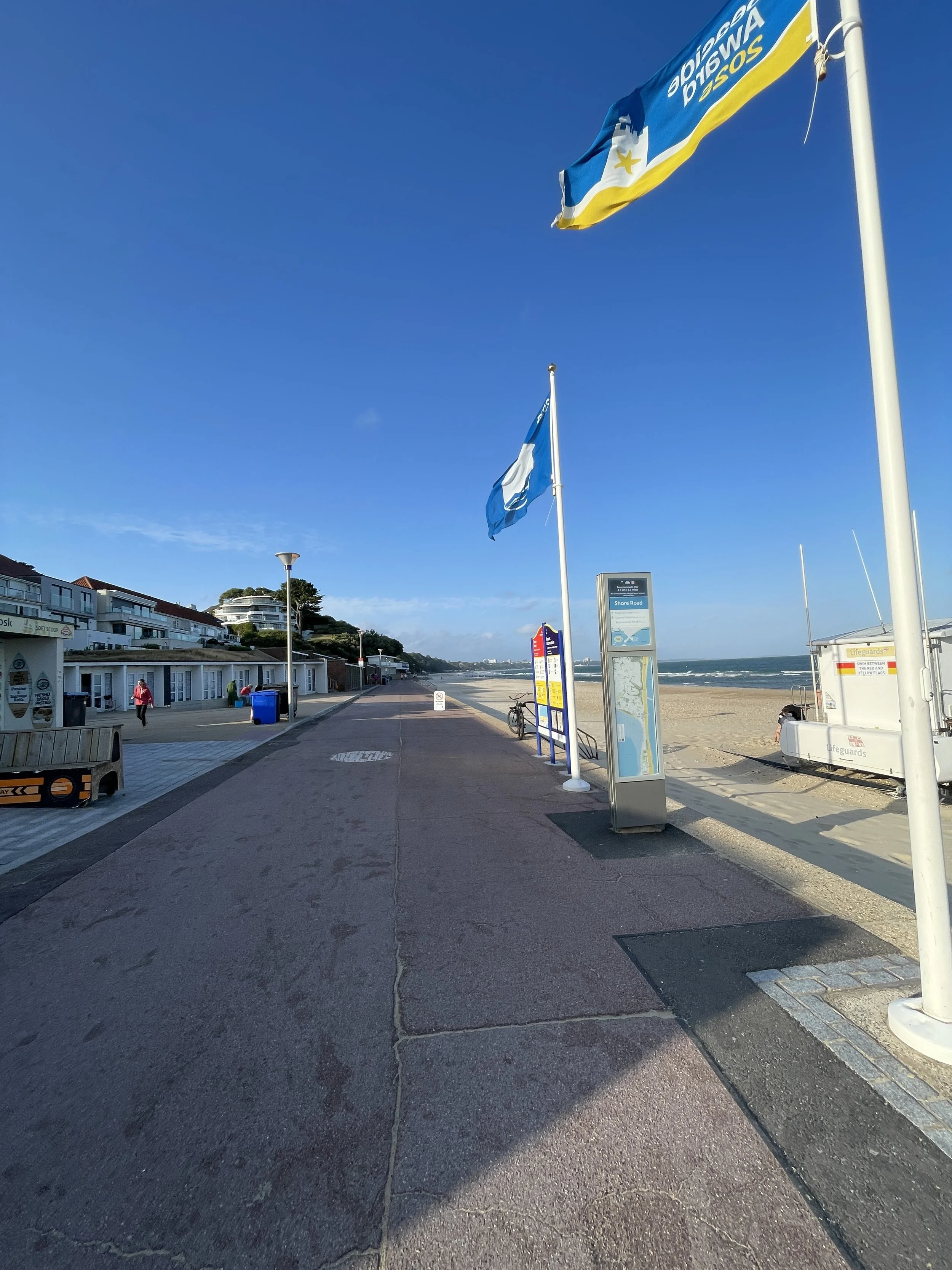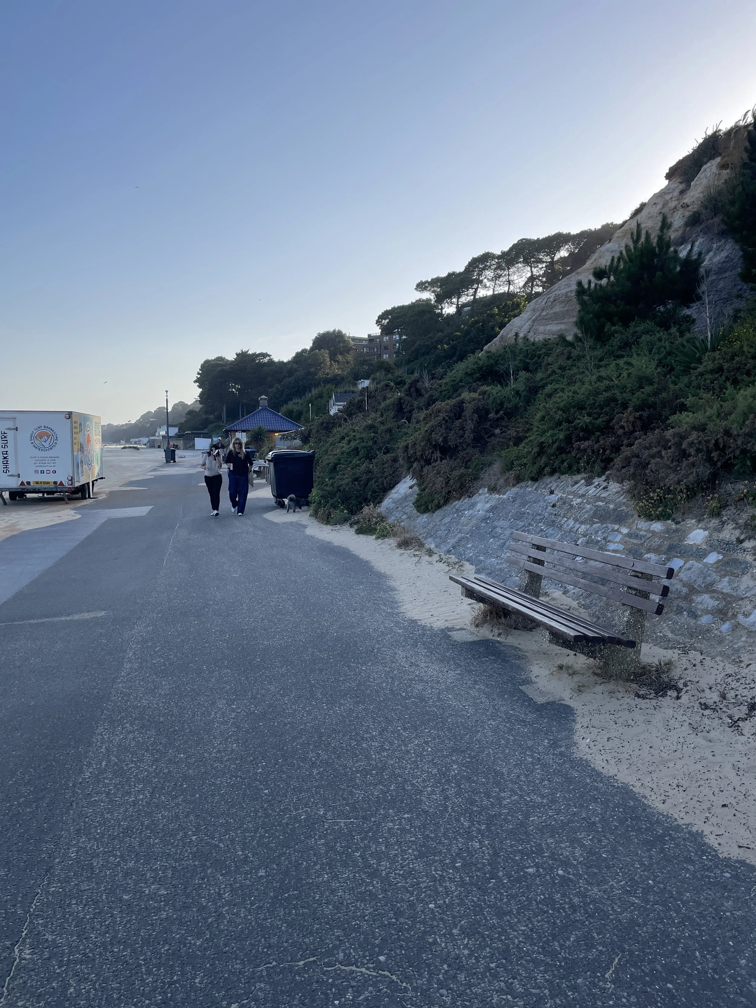 The route starts by the lifebelt at the bottom of Canford Cliffs Chine. Runners set off east towards and past Branksome. Just after the ice cream kiosk with a blue roof you will see a marshal ahead. Run around the marshal and head back past the start and all the way to Shore Road where you will see another marshal. Run around the marshal and back to the start to finish on the left.
